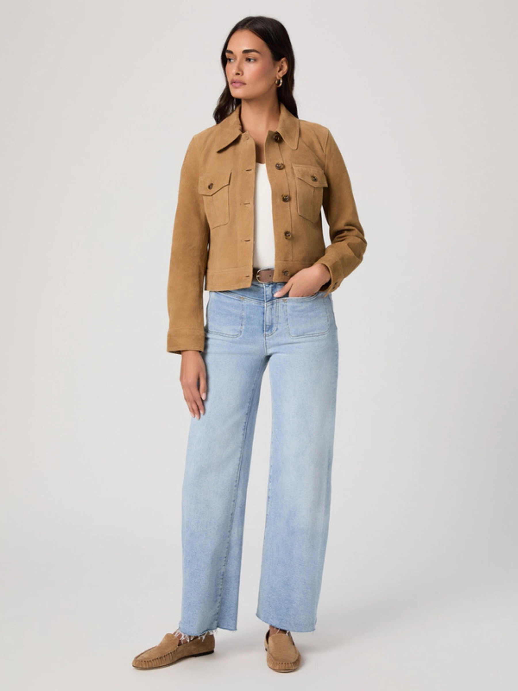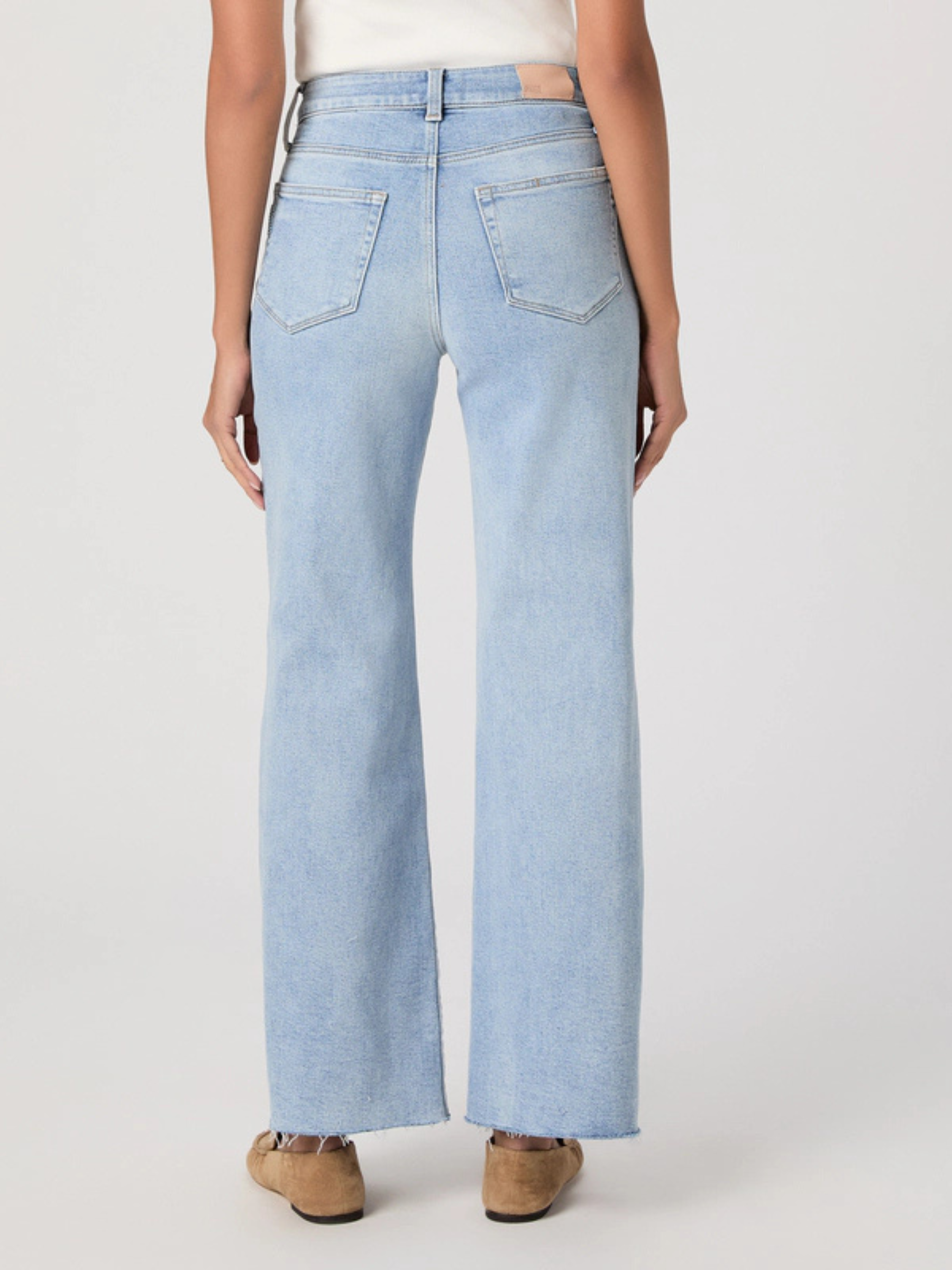 Anessa is our high-waisted wide leg with a slightly relaxed fit and a 31" inseam. Cut from TRANSCEND VINTAGE denim in a light wash a front yoke, stitch-through pockets, and a raw hem, this pair combines the signature comfort of Transcend with rich denim character for a lived-in look.