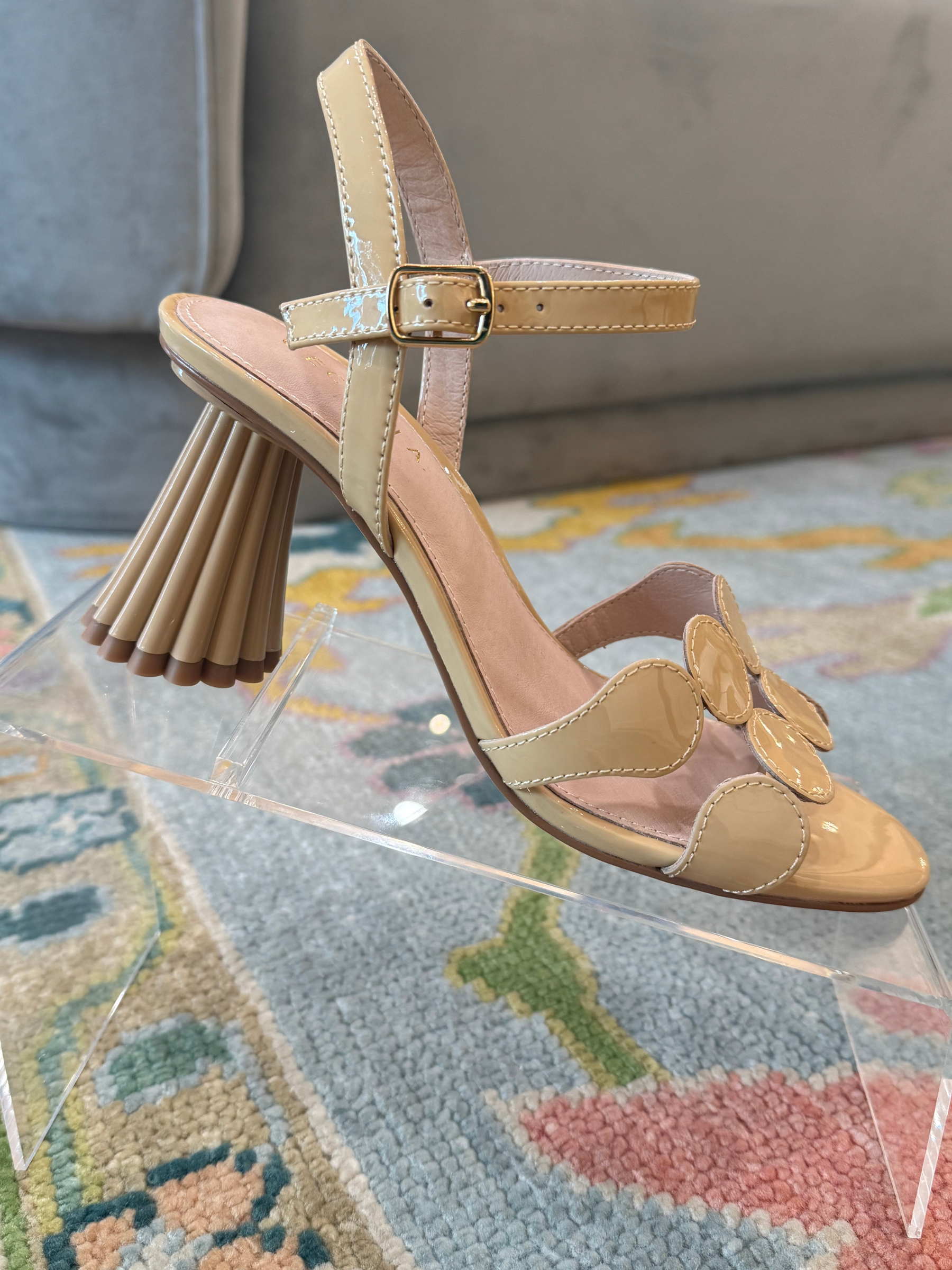 The Peter sandal in neutral patent leather is the definition of effortless elegance. Crafted in glossy patent leather in a soft neutral tone, this refined silhouette features sculptural rounded elements across the front that create a modern, dimensional design. The understated color makes it endlessly versatile, while the signature fluted heel adds architectural beauty that elevates the entire look.