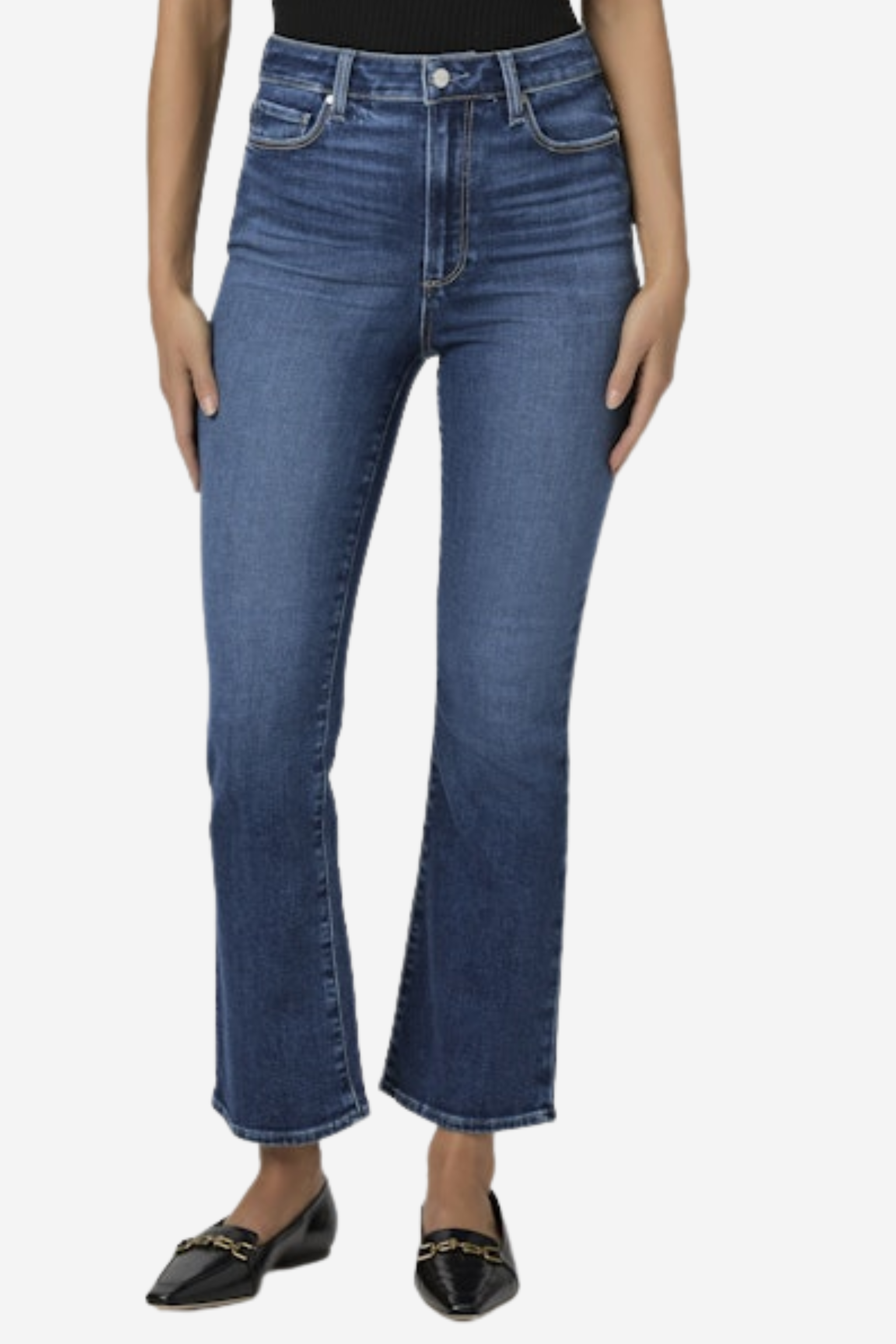 Claudine is our vintage-inspired, high-rise flare that finishes at the ankle. Cut from TRANSCEND VINTAGE denim in a medium wash with natural fading, this pair combines the signature comfort of Transcend with rich denim character for a lived-in look.