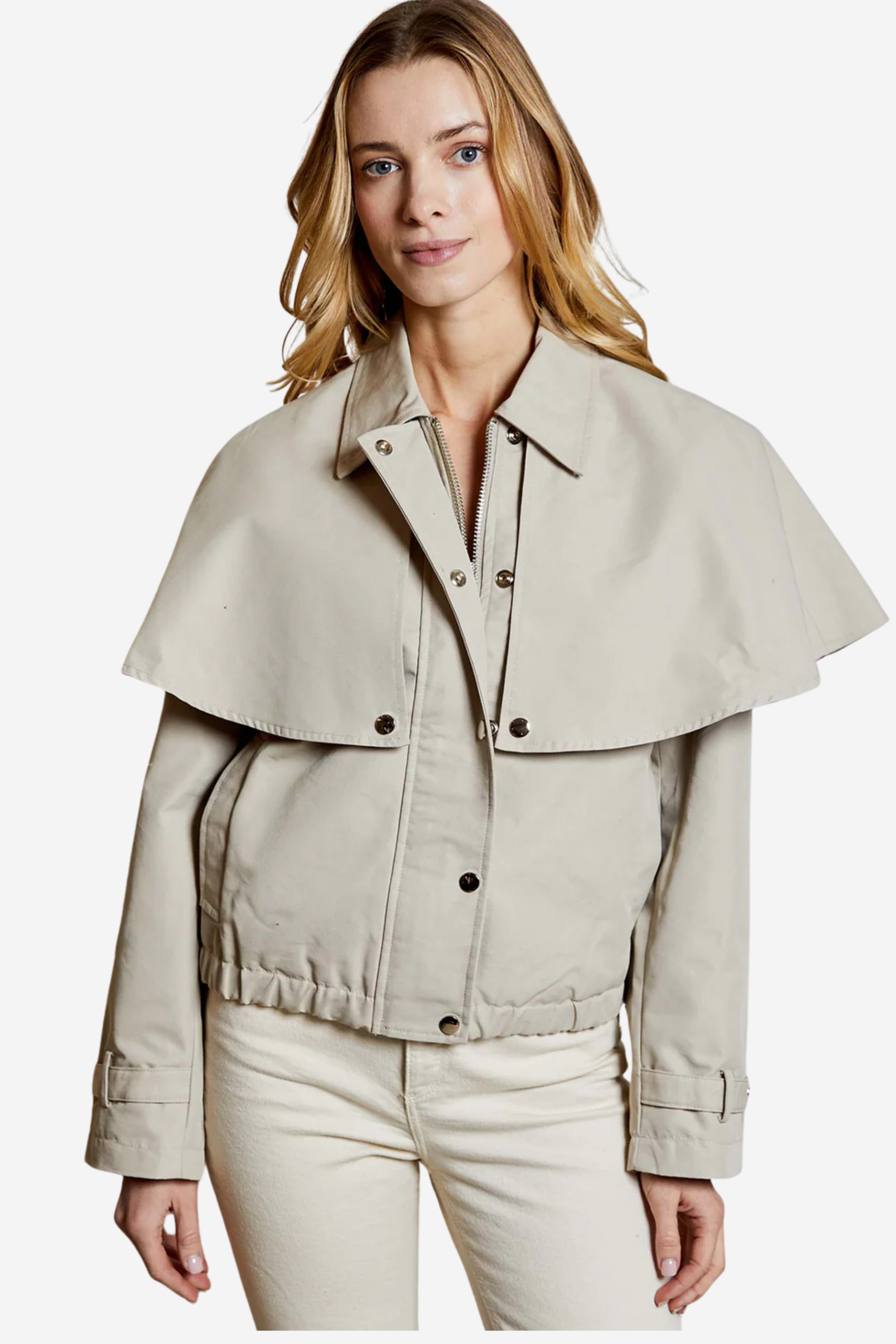 - Front zipper closure with snap placket - Elasticated hemline - Hand warmer pockets - Full lining