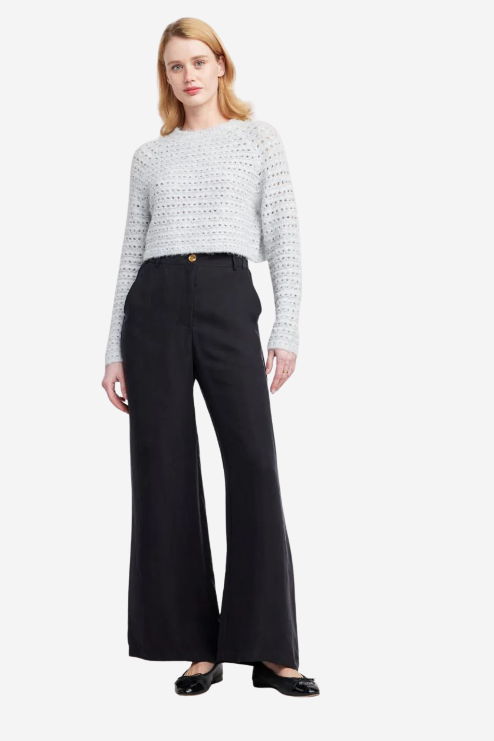 The Emersyn Long Sleeve Sweater is a cozy yet elevated knit with a delicate open-weave design. Cropped at the waist with a boxy fit, it adds texture and ease to any outfit. Wear it with wide-leg pants or layered over dresses for a soft, modern finish.