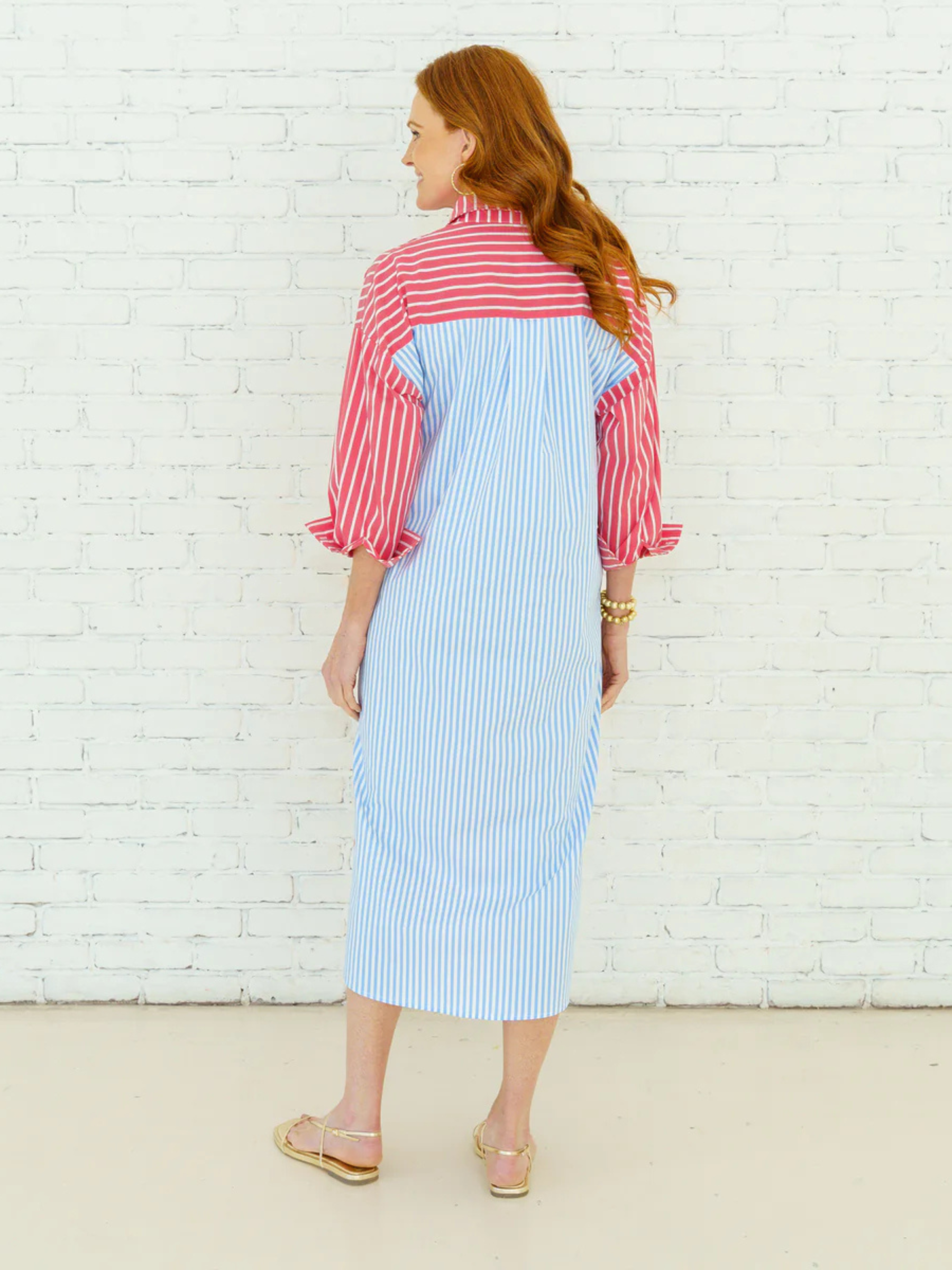 The Libby Dress is a classic shirt dress with a playful twist. Designed with a detachable belt for versatile styling, this easy silhouette features opposite colors on the front and back — adding a fun, unexpected detail to a timeless shape. Pop that collar, cuff those sleeves, and you’re instantly ready for effortless style on the go. Comfortable, polished, and endlessly wearable… and of course, it has pockets.